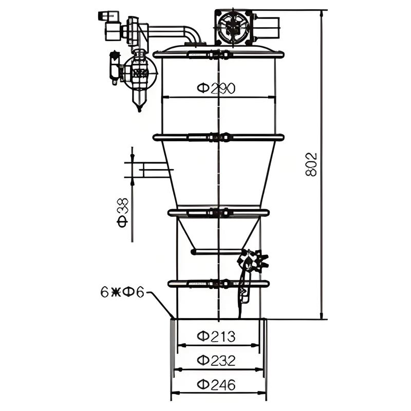 A vacuum feeder is a vacuum conveying device designed for powdery materials, granular materials, and mixed powdery-granular materials. It can automatically convey various materials into the hoppers of equipment such as silos, packaging machines, injection molding machines, and crushers. It can also directly convey mixed materials into mixers (e.g., V-type mixers, two-dimensional mixers, three-dimensional mixers, etc.). This equipment reduces workers' labor intensity and solves problems such as dust overflow during feeding. It is an essential device for pharmaceutical factories and food factories to obtain GMP certification, promote clean production, and achieve standardized workshop operations.