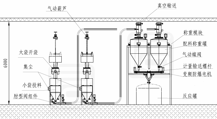 投料配比系统具有自动化程度高,操作简单,环保卫生,投料、取料准确的特点。既可一点多投、也可多点一投,充分满足对粉体输送要求比较高、输送功能比较多的生产工艺。该系统全自动化的操作,有效杜绝了人为操作可能引起的误差,广泛应用于食品、化工和制药行业。